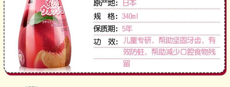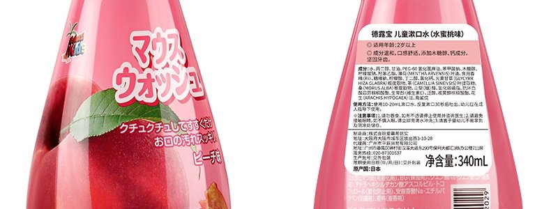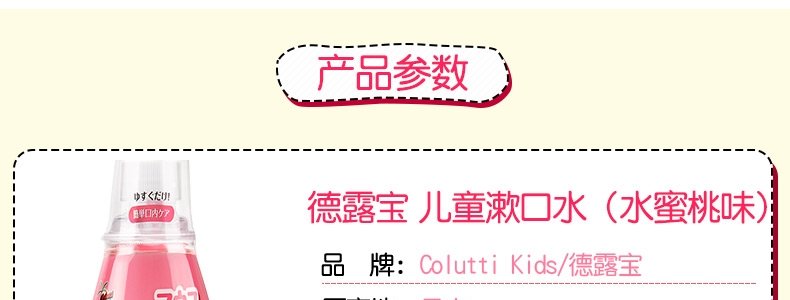 商品名称:德露宝 儿童漱口水(水蜜桃味) 340mL