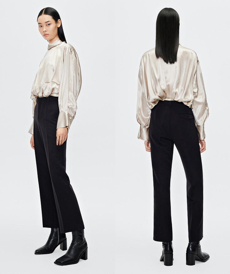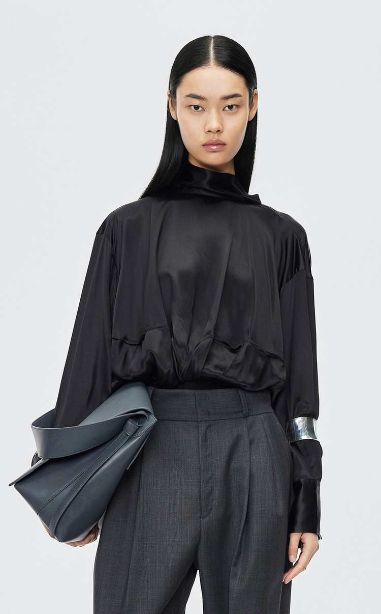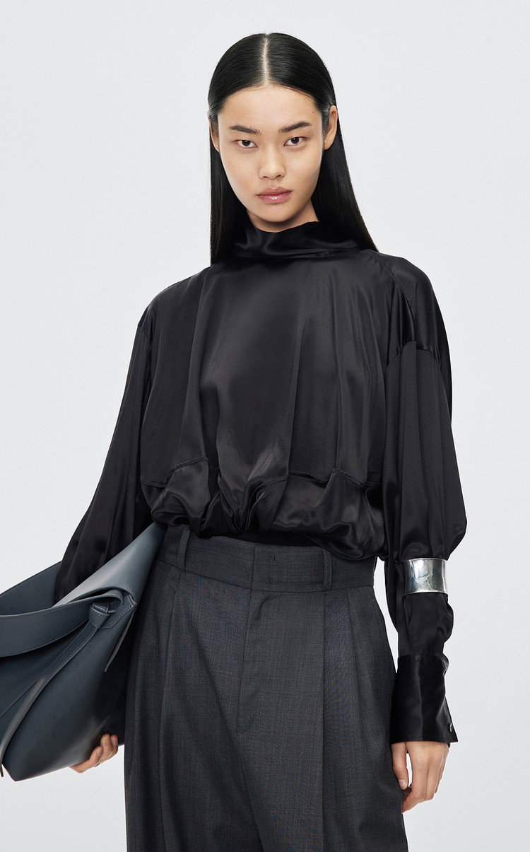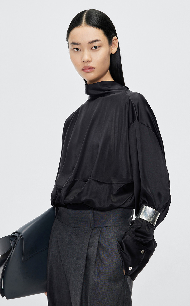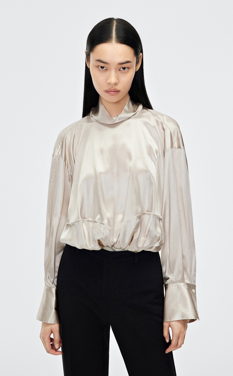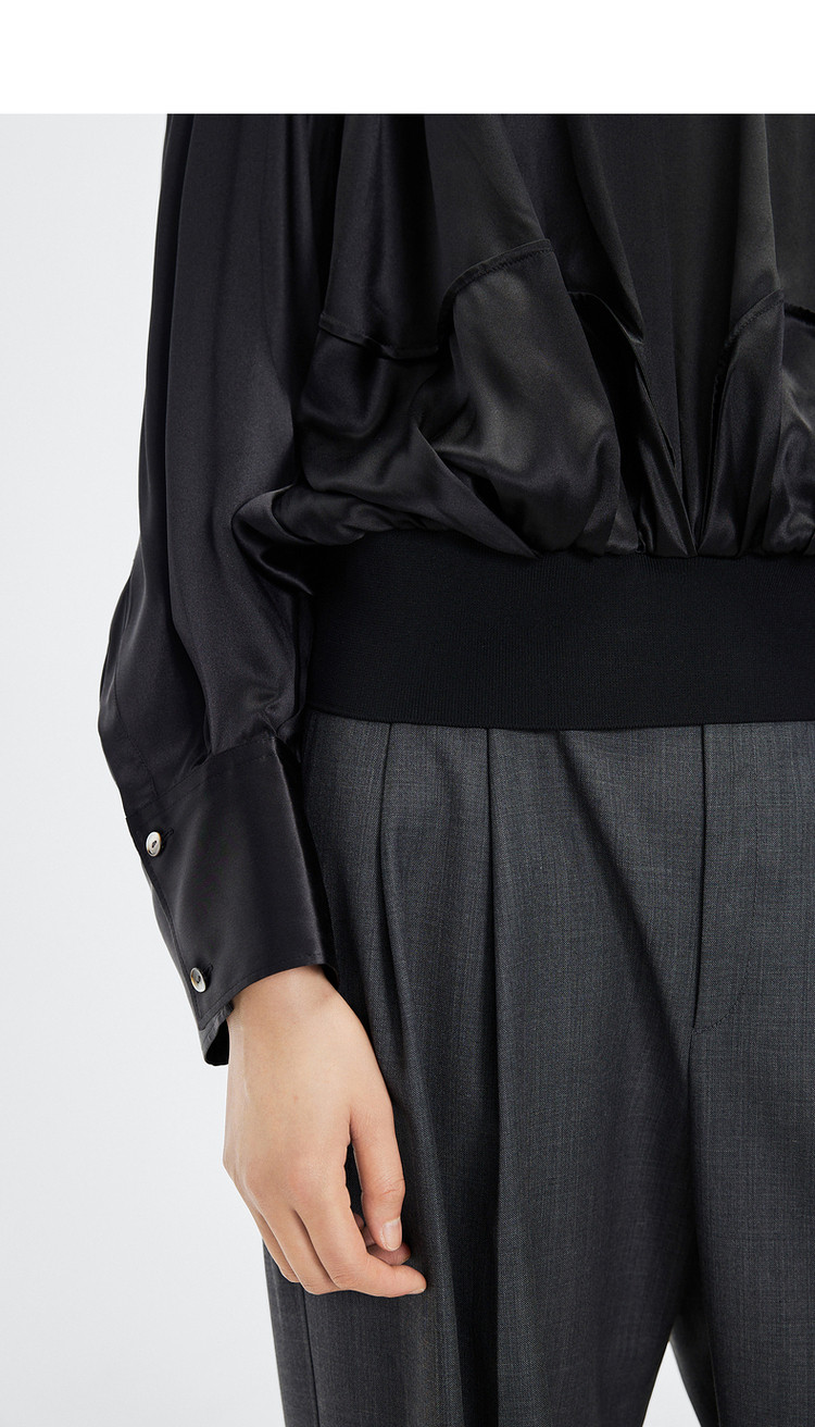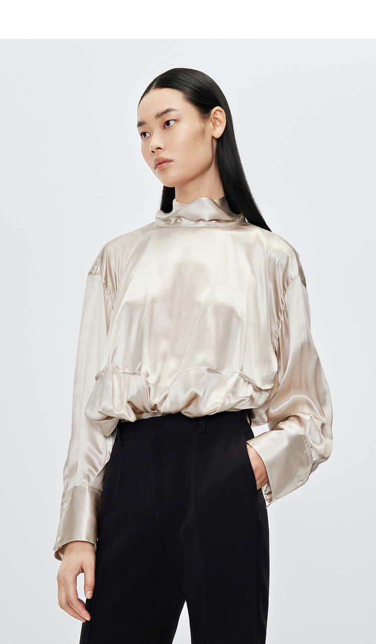 商品名称:秋衬衫立领长袖桑蚕丝套头衬衫女 153035