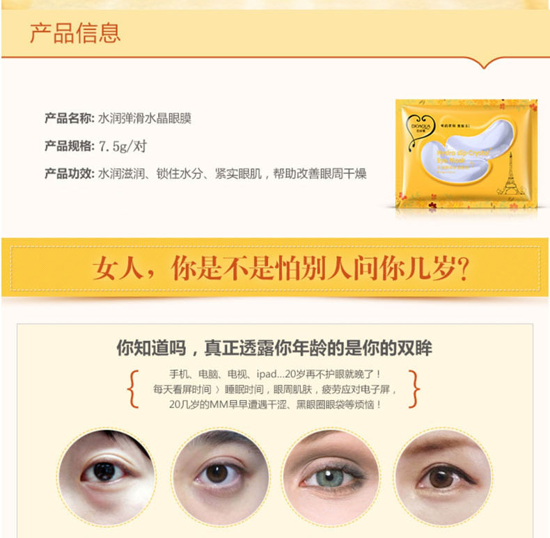 商品名称:泊泉雅水润弹滑水晶眼膜 保湿滋润 眼部护理 7.5g/对 10对/20对/30对