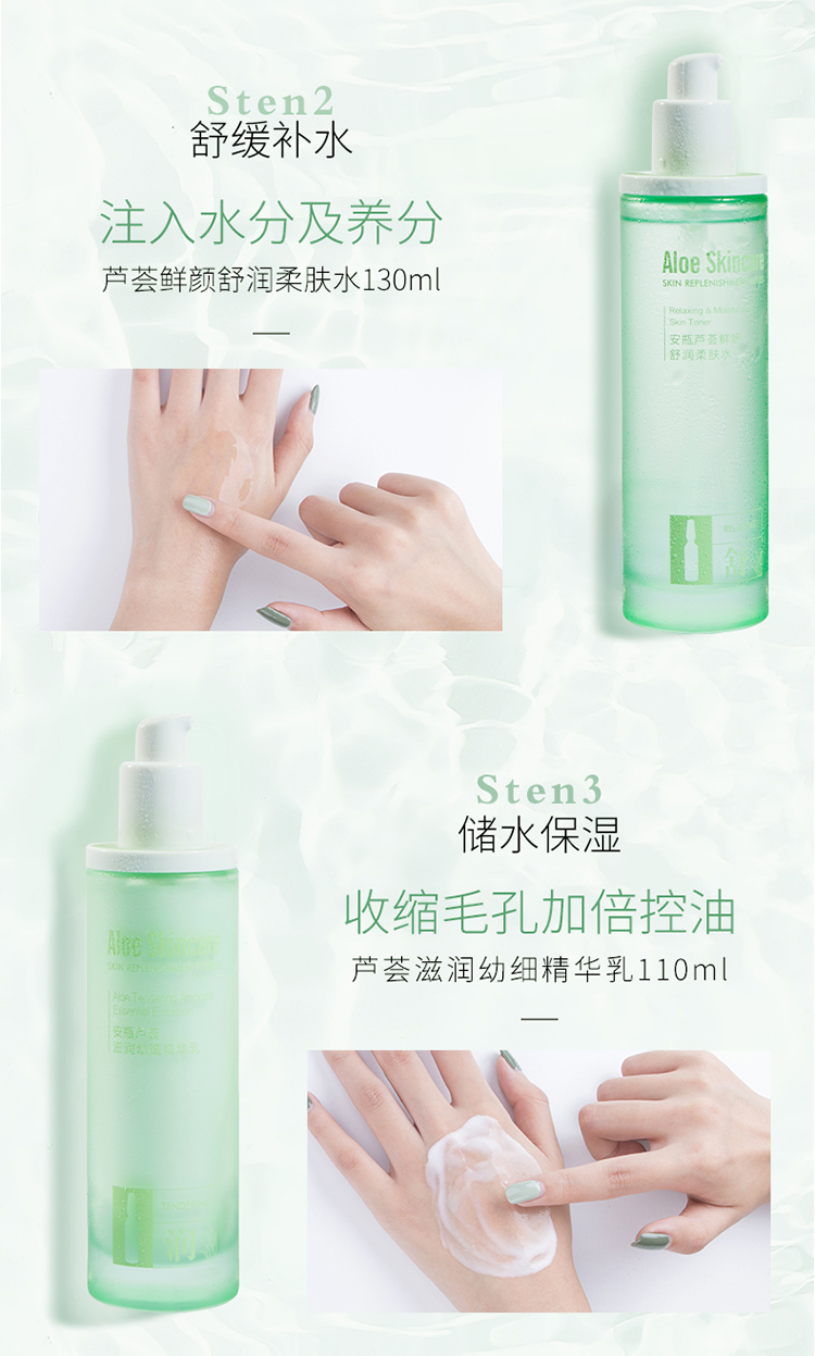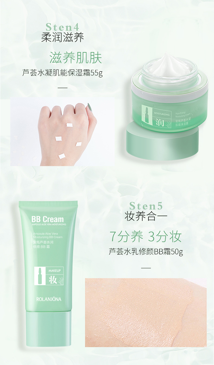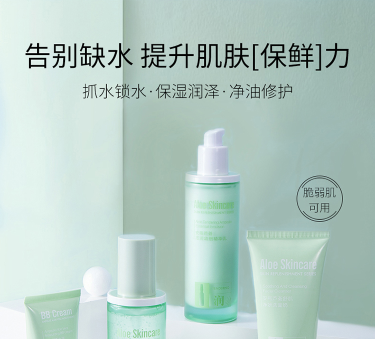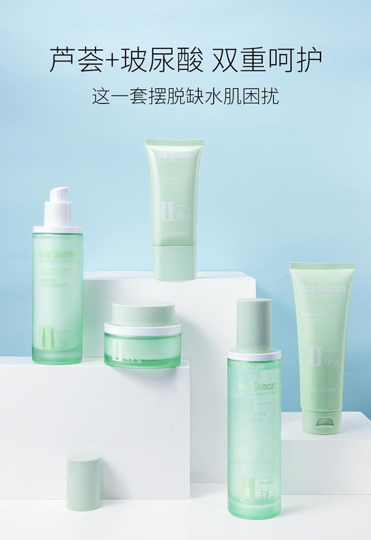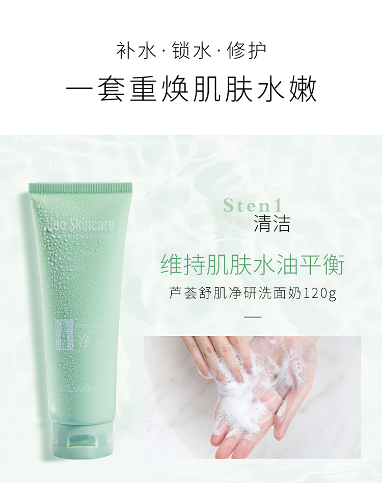 露兰姬娜小安瓶芦荟·舒肌补水套盒(洗面奶120g+柔肤水130ml+精华乳110ml+保湿霜55g)