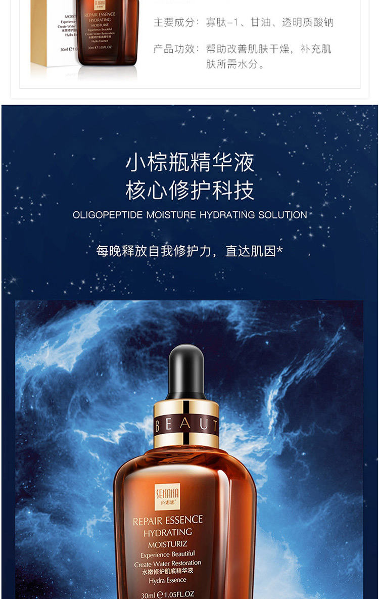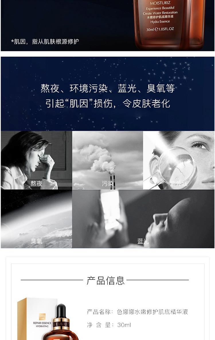 商品名称:色娜娜水嫩修护肌底精华液 锁水保湿清透水润 30ml