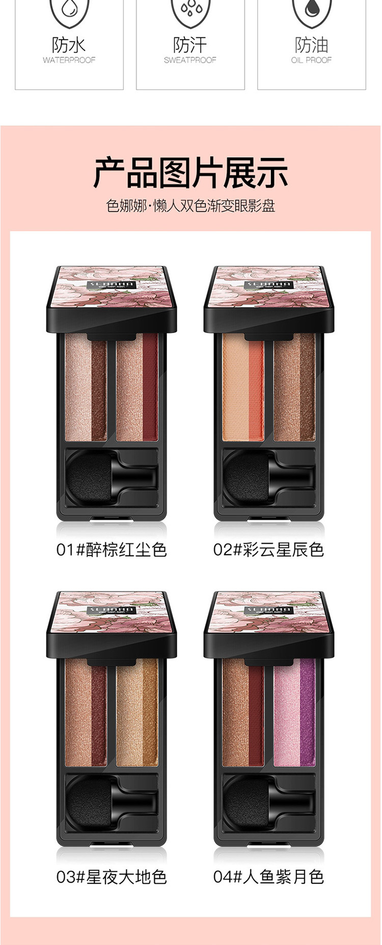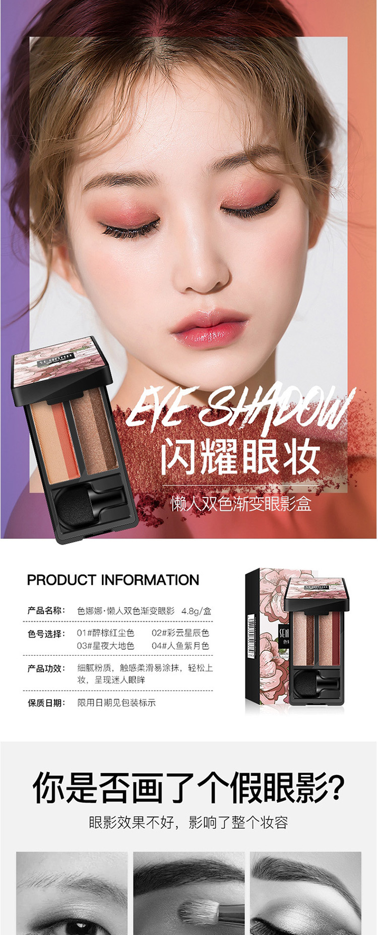 商品名称:色娜娜懒人双色渐变眼影盘 易上色易涂抹显色 4.8g/盒